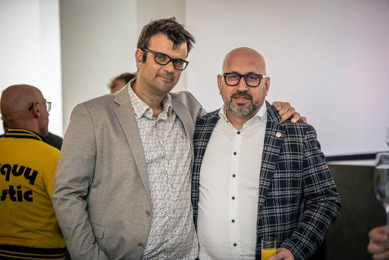 Het bestuur stak de koppen bijeen om er een leuke receptie van te maken, waarbij oud-leden kennismaakten met huidige leden - en misschien een beetje werden overtuigd om toch weer die schaatsen aan te binden. We verwelkomden ook huidig KBSF-voorzitter Corné Lepoeter, sponsoren van onze club en leden van andere Belgische clubs die BSC een warm hart toedragen. Na een fotomoment voor de krant, toostten we op een hopelijk mooie toekomst voor onze shorttrackclub. Nadien kon iedereen nog rustig de fotomuur bewonderen, door de boekjes met krantenartikelen snuisteren die erevoorzitter Willy Caboor had meegebracht, of moest eraan geloven voor een interview met het mediateam. Houd zeker doorheen het seizoen onze socials in de gaten voor deze prachtige beelden.
