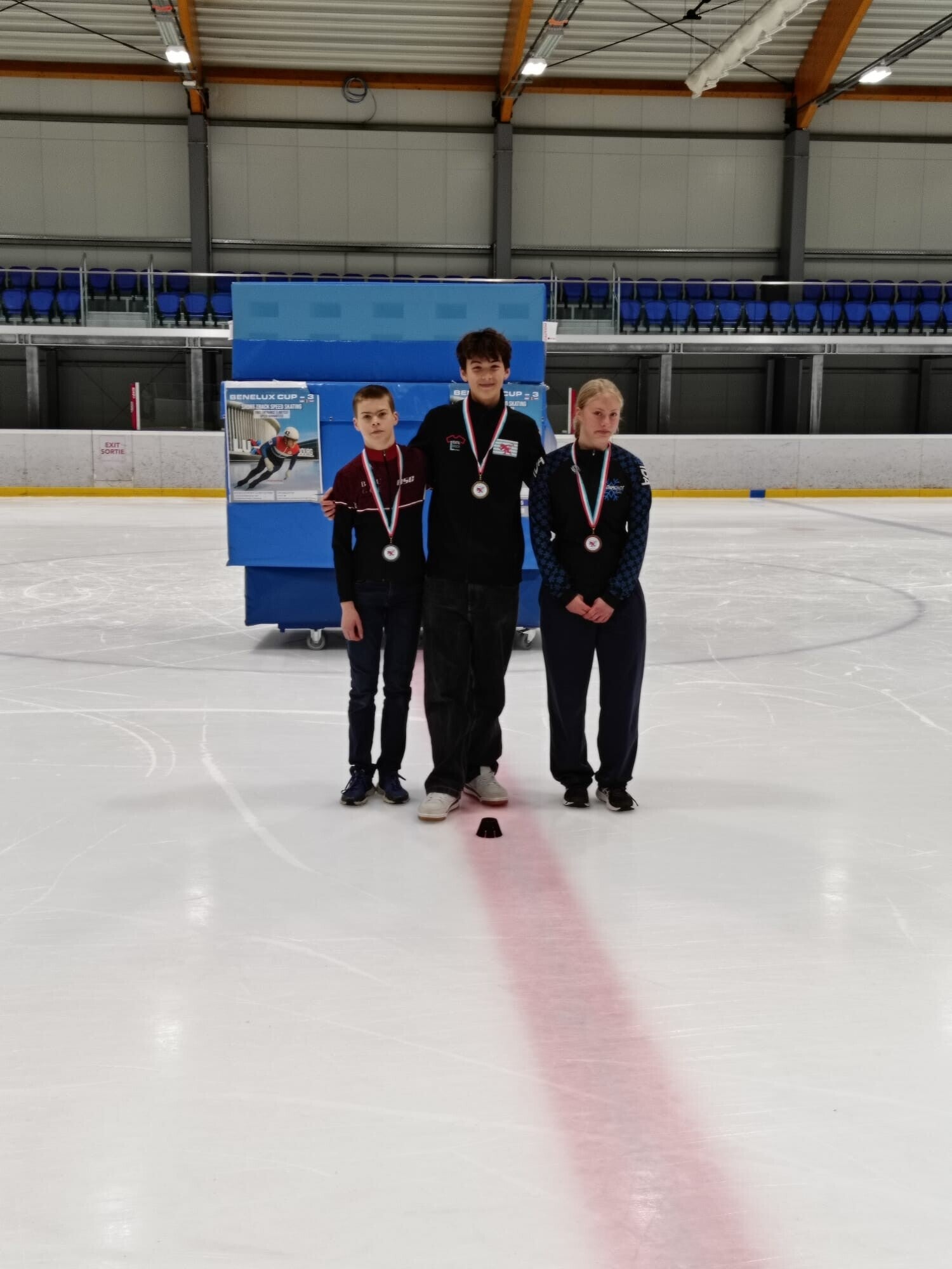 Vijf schaatsers trokken richting Luxemburg: Febe, Ferre, Ann, Tim en Stefaan. Tjorven kon er helaas niet bij zijn wegens een zware blessure die hij opliep tijdens de Cup in Tilburg. Toch verraste hij de clubleden met een bezoek en zorgde hij voor heel wat aanmoedigingen vanop de tribune.