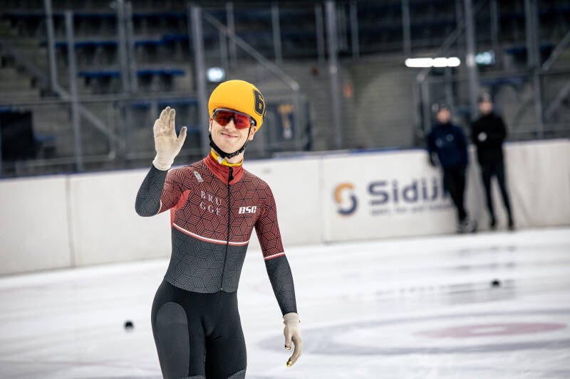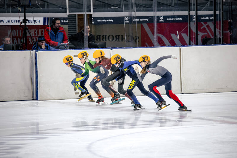 Ook Tjorven had zijn weg naar de Ireen Wüst-ijsbaan gevonden. Nieuwsgierig en enthousiast om te zien wat vandaag zou geven, want op de trainingen gaat het gemakkelijk en goed op zijn nieuwe maatschoenen. Helaas kwam Tjorven niet verder dan enkele meters, want in de start van zijn eerste 500m-rit in de A-divisie zakte hij door zijn been en kwam hij ten val. Niet in staat om erop te staan, bracht papa Yoeri hem meteen terug naar België om verder te laten onderzoeken. Het verdict: een gebroken kuitbeen, dat hij vermoedelijk al had opgelopen bij de eerste stap in de start. We wensen Tjorven namens de hele club een spoedig herstel toe!